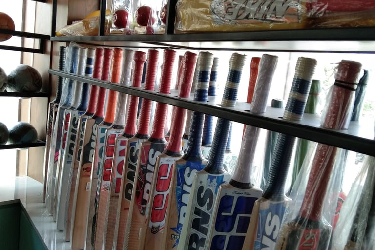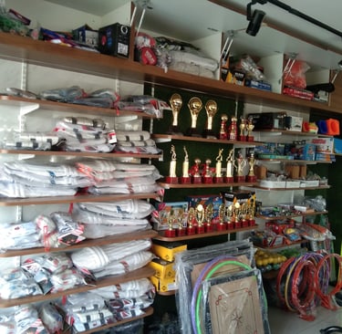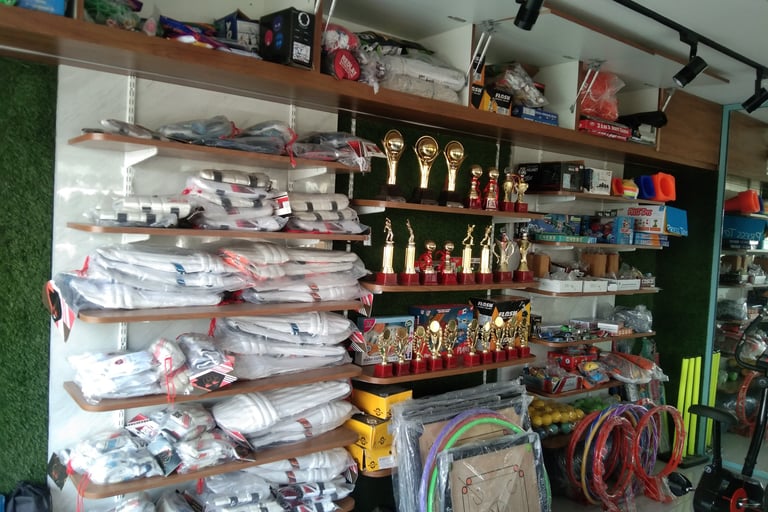 Cricket Gear-Bats,Balls,Gloves,Pads,Kits,Helmets Football & Volleyball-Balls,Nets,Jerseys,Studs Badminton & Tennis-Rackets,Shuttlecocks,Strings,Grips Gym & Fitness-Dumbbles,Benches,Resistance Bands,Yoga mats Sportwear-Jerseys,Shorts,Lowers,Tracksuits,T-shirts,Swimming Suits Footwear-Running Shoes,Training Shoes,Spikes